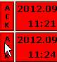 At the left side of a record the blinking or continuous status of button indicate the non-acknowledged/acknowledged status of an event. Click on this button to open the intervention text window of the associated datapoint.